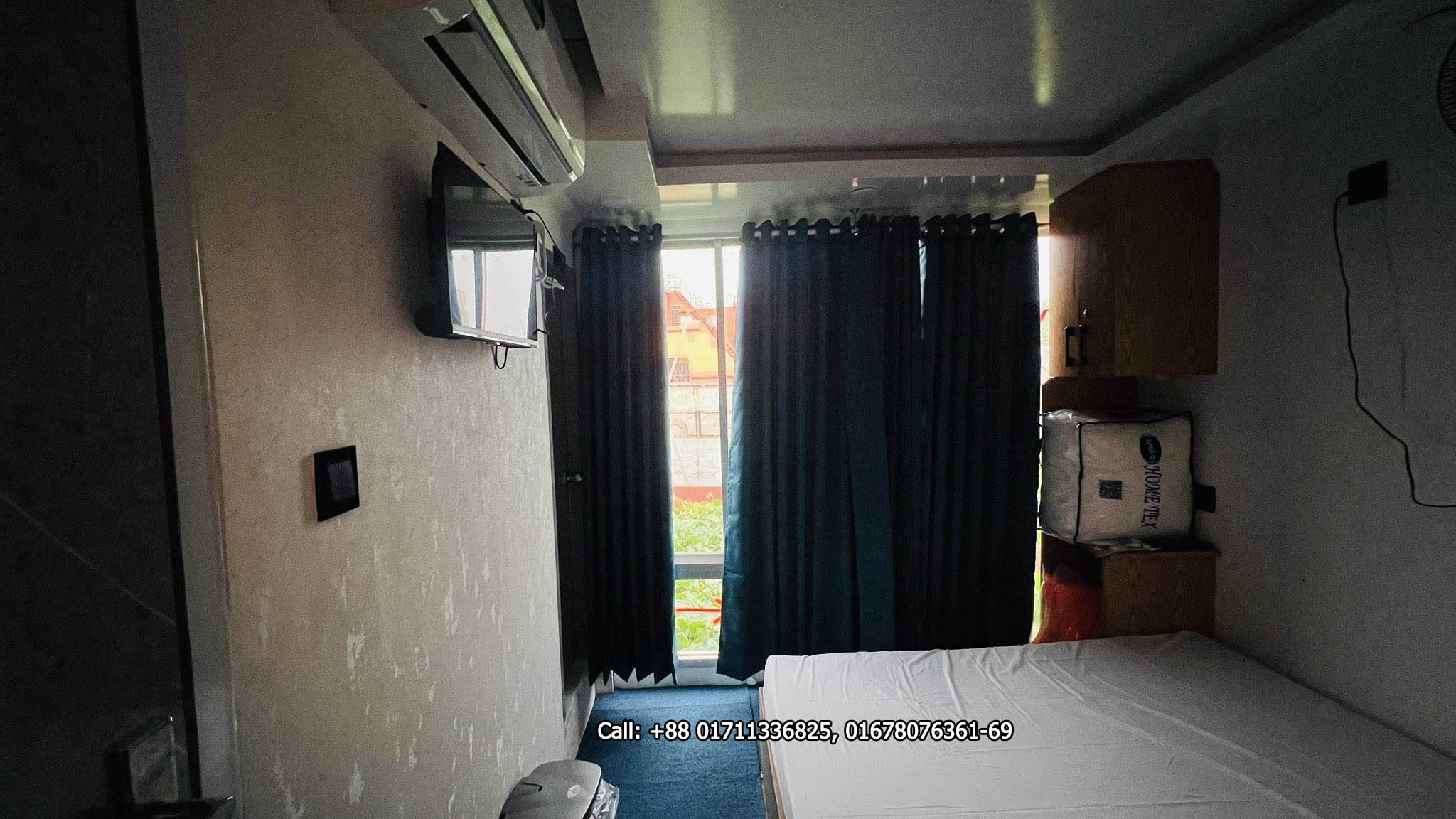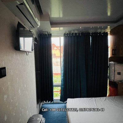 এসি কেবিন এটাচ ওয়াশরুমসহ (হাই কমোড)।